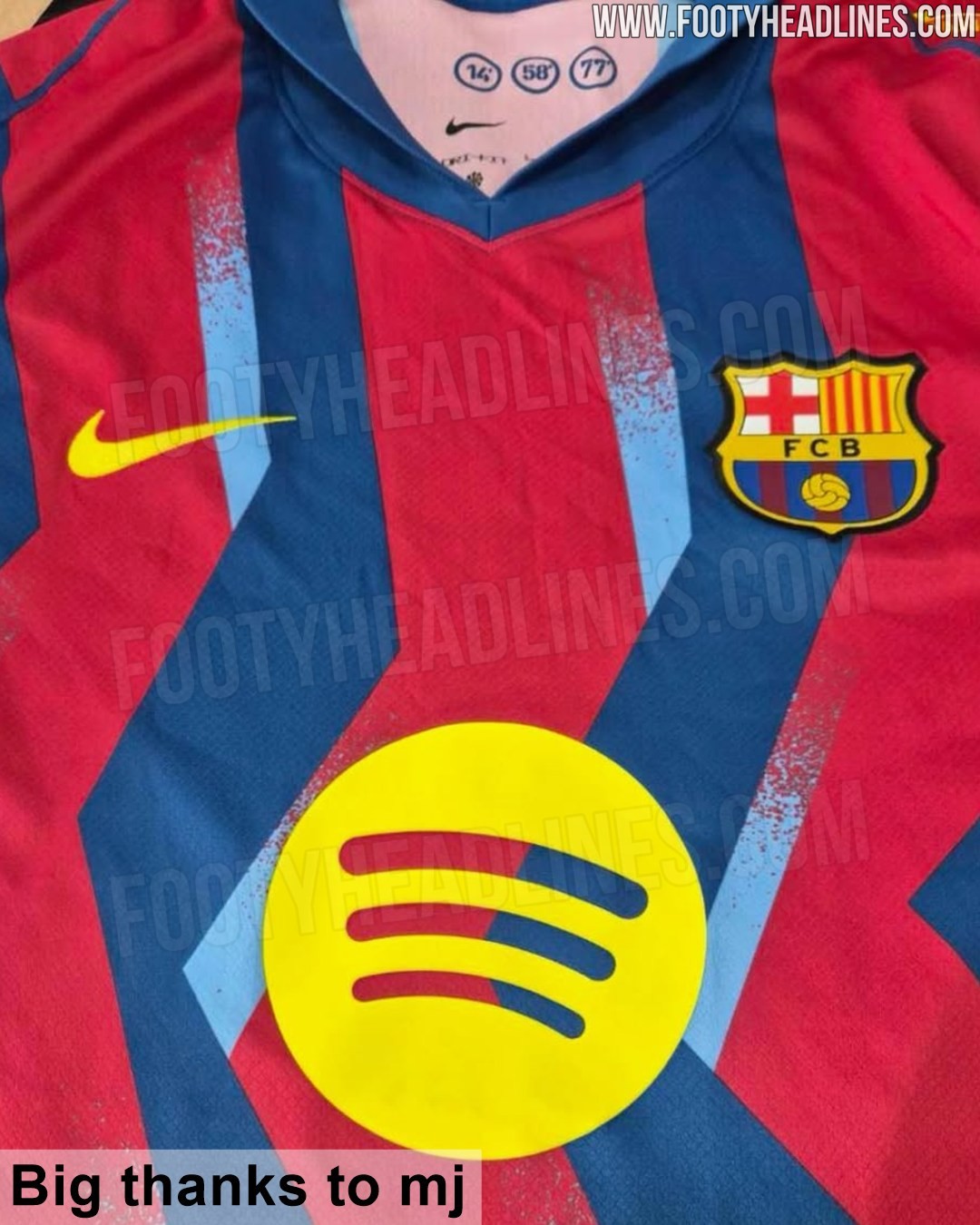 北京时间7月29日应牛配,知名足球装备网站Footyheadlines披露了首款耐克为巴萨打造的国家德比专属品牌球衣。