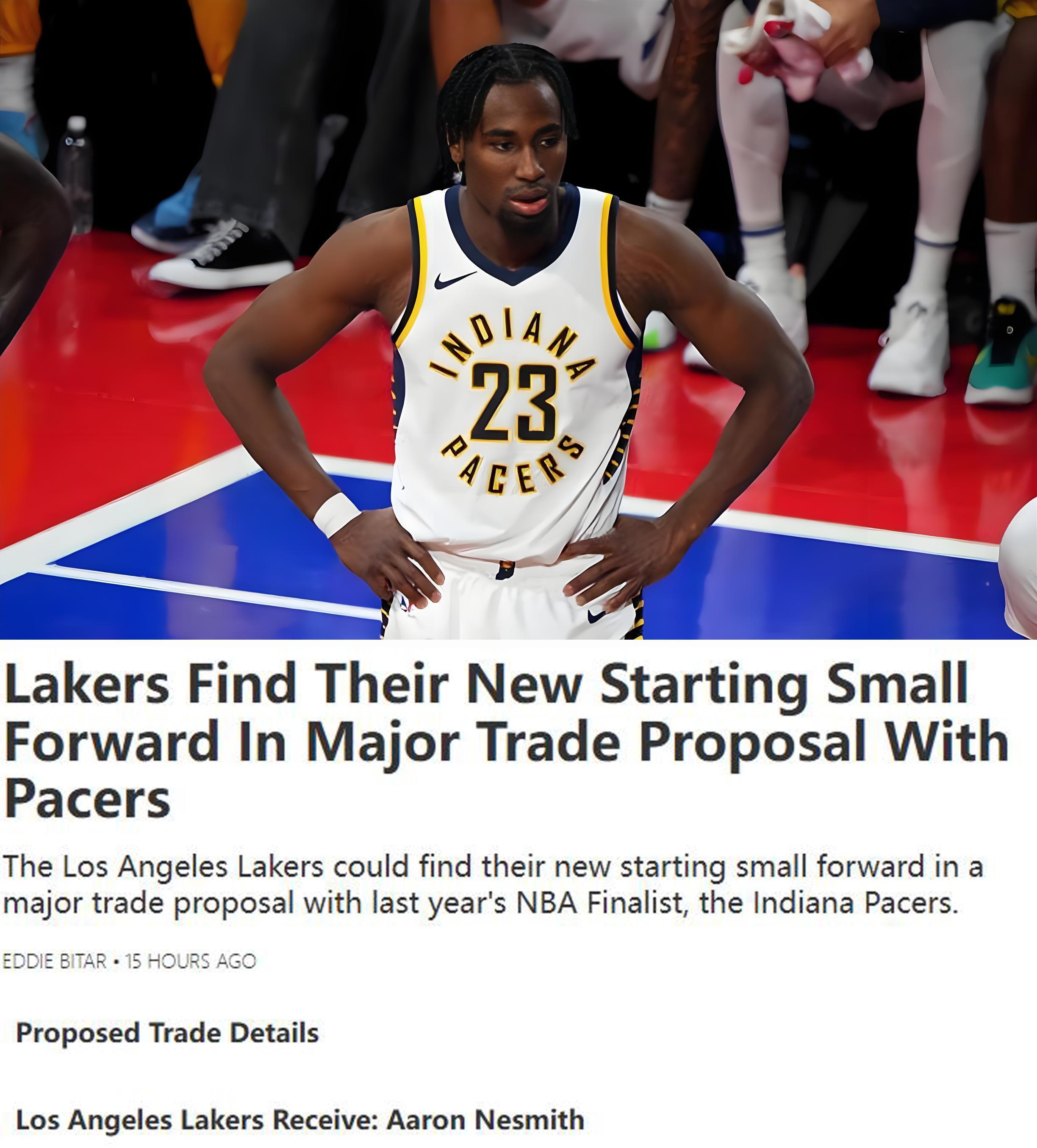 考虑到芬尼·史密斯离队。美媒《Fadeaway World》记者EDDIE·BITAR建议湖人、步行者做一笔交易。具体为湖人送出克内克特、范德比尔特、31年首轮、32年次轮得到内史密斯。